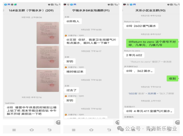 此外,通过业主微信群及客服电话,及时了解业主对试水试压过程中存在问题的反馈,并及时加以处理,力保冬季供暖工作顺利推进,让每一位业主在寒冷的冬季感受到家的温暖。